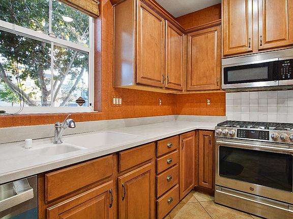 Very attractive former model home for the development. Freshly painted interior top to bottom. Home shows pride of ownership and is turn-key. Upgraded kitchen cabinets with center island. Stone countertops. Newer kitchen appliances including fridge, dishwasher and GE Cafe gas range with six burners. Ceramic floors downstairs. Living room decorated with wall art. Kitchen and bathrooms decorated with wallpaper. Fireplace with raised hearth and mantle. All three bedrooms upstairs. Primary bedroom has walk in closet and attached bathroom with double vanities, soaking tub and shower stall. Two smaller bedrooms with hall bathroom. Built in student desks in hallway. Separate laundry room with sink and cabinets. Washer/dryer included. French doors open to small patio yard with built in bar-b-que. Attached two car garage with painted walls, epoxy floors and built in storage shelves. Walk to Westlake Park and nearby tennis courts.