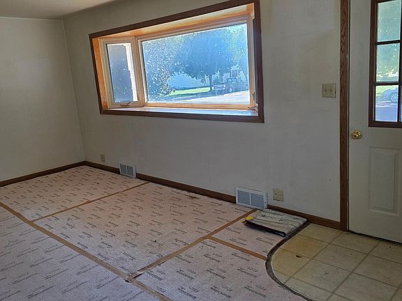Small town living with alot of local amenities such as local grocery store/gas pumps, hardware store and a medical clinic . Large corner lot This ranch-style home is primed for someone to come in and finish the interior details. Many great features such as original hardwood floors in bedrooms and living room/dining room). New furnace in 2021. Updates as follows= water heater, shingles, siding, windows . Two plus bedrooms along with an office/den. The kitchen does have custom kitchen cupboards with some slide-outs. A Breezeway between the kitchen and garage. This home is worth checking out with a country feel town with alittle drive to big box stores.