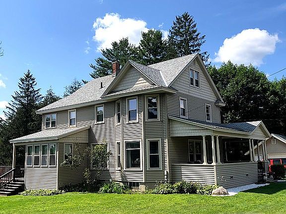 Plenty of space inside and out with this four bedroom Rutland City home on a 3/4 acre city double lot. The main floor offers a bright eat-in kitchen with granite countertops and new stainless appliances, formal dining room with built-in cabinets, large living room with a stained glass window, office/den and a 1/2 bath. On the second floor you'll find the master bedroom and bath, with a tiled shower and separate large soaking tub, and two closets. Two additional nice sized bedrooms, a second full bath, and built-in linen closet are also on the second floor. Spacious third floor bedroom offers endless possibilities. Walk out the partially finished basement onto an expansive multi level deck, the lower portion wrapping around a 27' above ground pool. Large private backyard offers plenty of room to run and play. Covered front porch provides additional outdoor space, and is a perfect spot to relax and enjoy this quiet residential neighborhood. There is a detached one car garage with attic storage, as well as a separate storage barn that could also be used as a workshop. Home is located within walking distance of Rutland Intermediate and Middle Schools. Pine Hill Park mountain bike/hiking trails are also close by. Enjoy summer and winter activities on Lake Bomoseen or Pico/Killington ski areas, which are within 20 minutes.