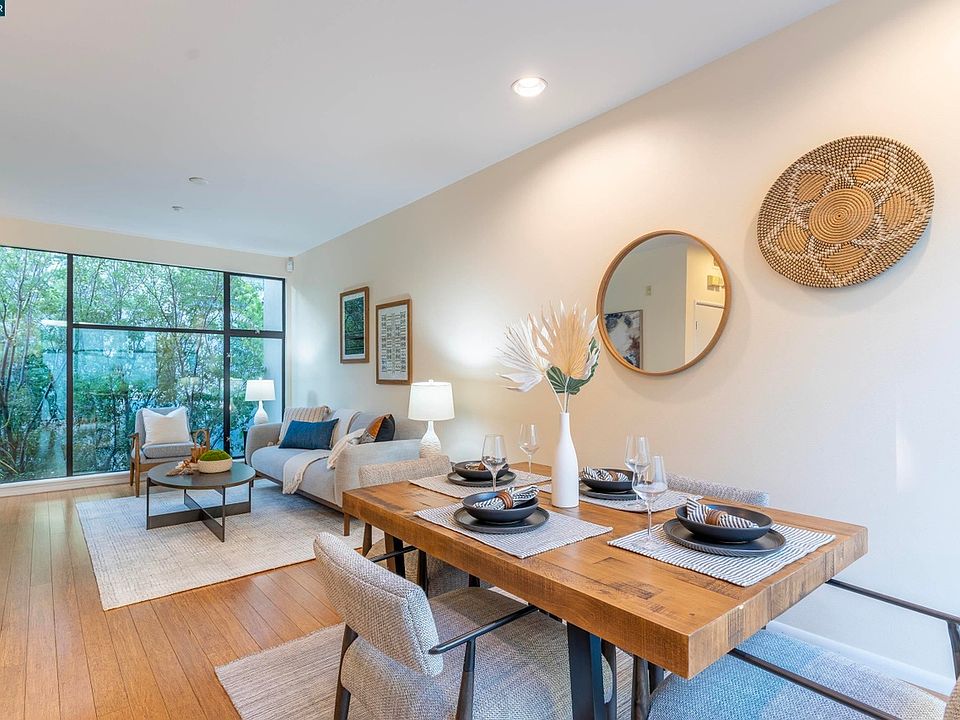 Home Features: - Lush landscaping offers privacy and a peaceful setting - Oversized windows fill the space with natural light - Gourmet kitchen with granite countertops, chef's gas stove, LED lighting, and stainless steel appliances - Two bedrooms, each with en-suite bath; one includes a private balcony - Spacious 2-car garage with in-unit laundry and extra storage Neighborhood Highlights: - Walk Score 93, Bike Score 91 Greenway trail just half a block away - 8-minute walk to Berkeley Bowl, 15 minutes to Public Market, 3 minutes to City Sports Club, John Muir Health Urgent Care Center, and UCSF Berkeley Outpatient Center - Close to Bay Street, IKEA, and Fourth Street shops and dining - 5-minute walk to stops for AC transit to SF and Berkeley; complimentary Emery Go Round shuttle; 10-minute bike to Ashby BART station - Several schools nearby Owner pays for garbage collection. Renter is responsible for gas and electricity (PG&E), water and sewage. No smoking allowed.