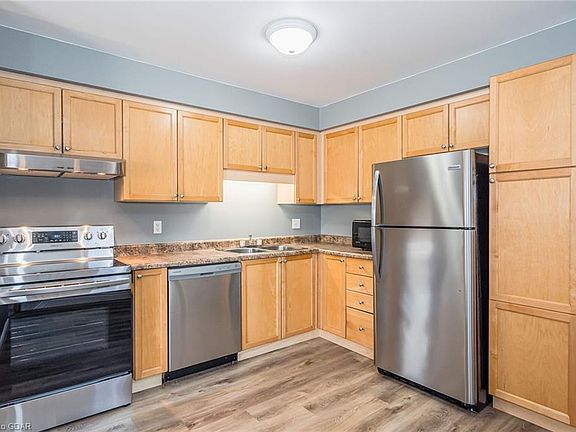 Ready and waiting for you and your family! Plenty of new stuff in this 3 bedroom, 3 bathroom end-unit townhouse, including new kitchen appliances, Luxury vinyl flooring and baseboard trim throughout the open concept main floor and all new carpet on the stairs and upper level. Freshly painted and professionally cleaned from top to bottom for your move-in ready convenience. The 1-car garage with inside entry, plus a completely fenced private rear patio area are welome bonuses. Situated in the heart of Westminster Woods you are located close to everything from walking trails to an abundance of shopping and restaurants. Easy highway access, local schools and parks as well as public transit ensures this extremely popular development will always remain a Guelph favourite.