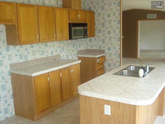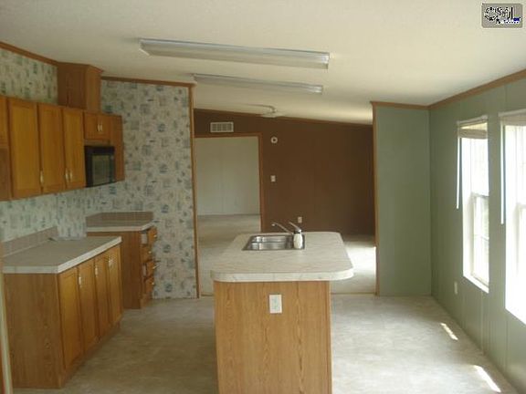 4 bedroom, 3 bath mobile home on 1.87 acres. Great room/dining room combo. Living room. Fireplace. Kitchen with island. Rear storage building.