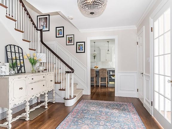 Set back on Cliff Road sits this stately colonial that blends rich updates with the charm of a classic home. The wonderfully designed kitchen is anchored by a substantial island with a marble top, crisp white cabinetry and a welcoming banquette for everyday meals. Flowing off the kitchen is a show stopping custom designed family room with barrel ceiling and shiplap wrapped fireplace. The first floor also boasts a hip and useful mudroom with cubbies and a fabulous dining room complete with butler's pantry. On the second level is a roomy master suite with a full bath and walk in dressing area plus four family bedrooms- one off the back staircase which offers flexible space as an office. The third floor is bright and inviting with a bedroom and full bathroom. The walk out lower level is spectacular space for play or relaxation and is renovated with the same level of detail as upstairs. Step onto your fabulous deck to get to the expansive and grassy yard. New systems and windows-wow!