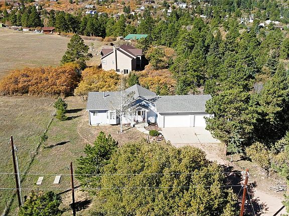 Custom 2x6 construction home nestled at the end of a seldom traveled street in the Palmer Lake foothills. This private lot features amazing views and ample opportunities to view wildlife. All of this just a ten minute drive to Interstate 25 and Santa Fe trail access. There is plentiful storage, an outdoor RV parking area, and an insulated oversized 3 car garage. Watch sunsets in the from the the large west-facing 10x42 redwood deck. The entrance to the home welcomes you into an open concept, main level living ranch with vaulted ceilings and an plentiful natural light. The kitchen provides a large pantry, gas stove and an island for additional counter space. Main level living room features a gas fireplace, access to the deck and a large master suite. The updated master bathroom features a beautifully tiled double shower, a large walk-in closet and access to the main level laundry room. The main level also has a 1/2 bath and an additional room for an office or a small bedroom.