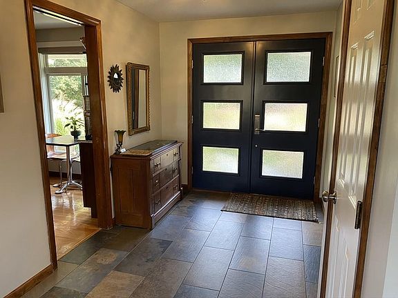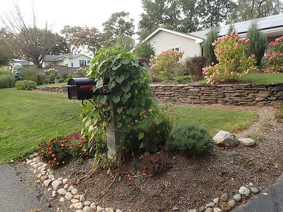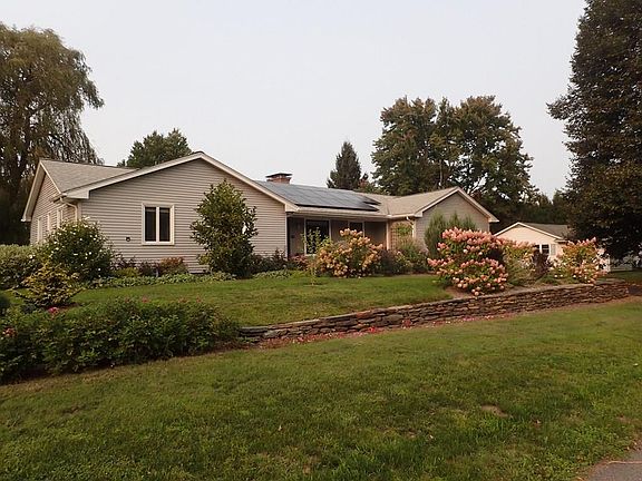 Move right in and enjoy the change of seasons! This 3 bedroom 2.5 bath executive ranch is in pristine condition, just minutes to downtown Amherst and area colleges. The recently remodeled kitchen is right out of a magazine with rich wood cabinets and quartz counters. The large living room with Harmon pellet stove and many custom built-ins overlooks the beautifully landscaped yard and Bramble Hill Farm. The sizable dining room connects to a glassed in porch; a perfect spot to relax year round. If you need a family hangout space, this house has it! The basement is mostly finished with a fireplace and television/game room and office space. Bathrooms have been remodeled with new tile, vanities and Kohler toilets, the hardwood floors throughout have been refinished and well maintained. Dry storage and laundry are on the basement level as well. The generous back yard has a shed, brick paver patio, fire pit, and large grassy area for play. Solar is owned, no electric bills! More pics to come