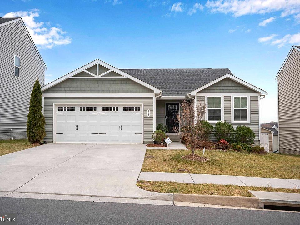 One-level living in the sought-after Village at Middletown! This move-in-ready home welcomes new owners with an open floor plan designed for comfortable living and easy entertaining. The living room flows seamlessly into the kitchen, creating a bright and inviting main living space. The spacious kitchen features a breakfast bar, ample table space, and access to a large, low-maintenance Trex deck—perfect for cookouts or relaxing outdoors. Main-level laundry adds everyday convenience. The primary suite offers a walk-in closet with generous storage and a private bath with shower. Two additional well-sized bedrooms and a full hall bath complete the main level. The full unfinished basement includes egress for a future bedroom, a rough-in for a full bath, and the potential to nearly double your living space. A two-car garage with additional storage and a concrete driveway provide plenty of off-street parking. Ideally located for commuters, just minutes to I-81 and I-66, with easy access to local shops, schools, and amenities.