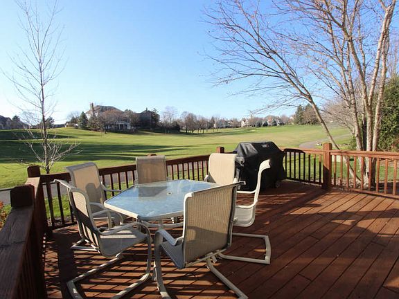 Beautiful ranch home located within the gated community of Boulder Ridge. This home is situated towards the end of a peaceful street overlooking the 14th green. Lots of light with the large windows and open layout. Spacious kitchen has newer LG stainless steel appliances and an eating area with sliders out to the deck. Living room with gas fireplace and vaulted ceilings make the room feel cozy and spacious while the alcoves with recessed lighting are a beautiful architectural effect. The adjacent dining room is perfect for larger gatherings. Working from home is convenient in the front office space with french doors and plenty of natural light to work by. At one end of the hall is the master suite with dual walk in closets and en suite bathroom with jacuzzi tub and dual sinks. The second bedroom and bath are located at the other end of the hallway. The finished basement provides more space to spread out with a third bedroom and full bath. The downstairs living space with a second fireplace is perfect for a family room or rec area. There is even a wet bar that makes for convenient entertaining. There is additional space with french doors that is perfect for a play room, hobby room or second office. Area amenities include the clubhouse with tennis courts, dining and beautiful golf course. There are plenty of paths to tour the beautiful grounds and ponds of Boulder Ridge.