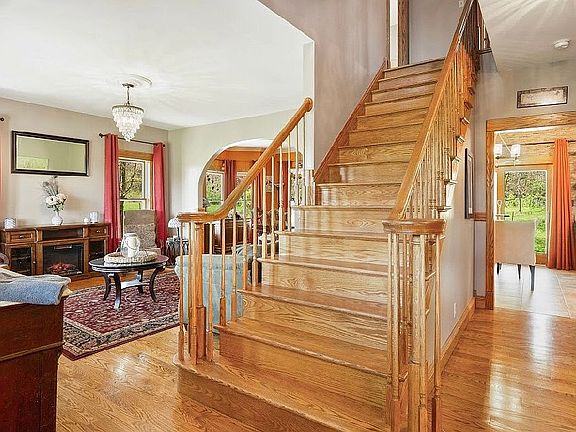 Welcome Home! 151 Crestwood Road, a contemporary farm house, sitting on six well-manicured acres and just two miles from the lovely village of Red Hook, is the perfect spot to work, play, rest, LIVE! This approximately 4000 sqft home, with central air, breathes light from every corner,with 54 windows and a well-thought-out floorpan. From the wraparound porch overlooking the beautiful grounds with softly rolling hills, and mature trees and garden, outdoors has never looked so good! Inside, spacious and elegant, this large and lovely home offers up four bedrooms,three and a half baths, a living room perfectly set up for conversation and time well spent with friends and family, and a cozy den just right for an afternoon in front of the fireplace with a good book. Right next to the ground floor bath is a light and bright sitting room, easily transformed into a fifth bedroom. The well-appointed eat-in cook's kitchen, with its' stacked slate feature wall, a more-than-generous pantry, and granite counter tops, invites the chef in you to step up! Eat in the formal dining room, or out on the comfortable screened-in porch. Additionally, this haven has a separate office space with its own entry - ideal for working from home, or home-schooling. The finished basement/media center is also home to an enormous laundry room. Rounding out the property is the huge heated barn with double doors and a framed loft, easily convertible to guest quarters. 151 Crestwood Road, a short jaunt to Red Hook's varied restaurants and quaint shops, Bard's cultural opportunities, and Rhinebeck's nearby train station, make this a terrific reason to call the Hudson Valley home.