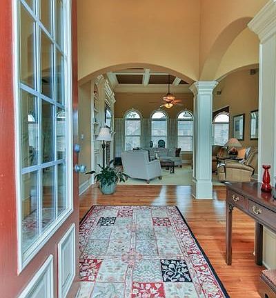 - Double Vanity, Walk-In Closet(s), Vaulted Ceiling(s), High Ceilings, Gas Logs, Separate Shower, Garden Tub, Bookcases, Entrance Foyer, Hardwood Floors, Tile Bath, Tile Floors, Carpet, Tray Ceiling(s), Cable In Street