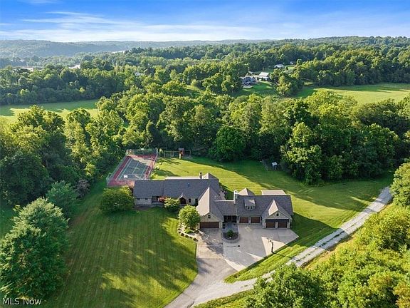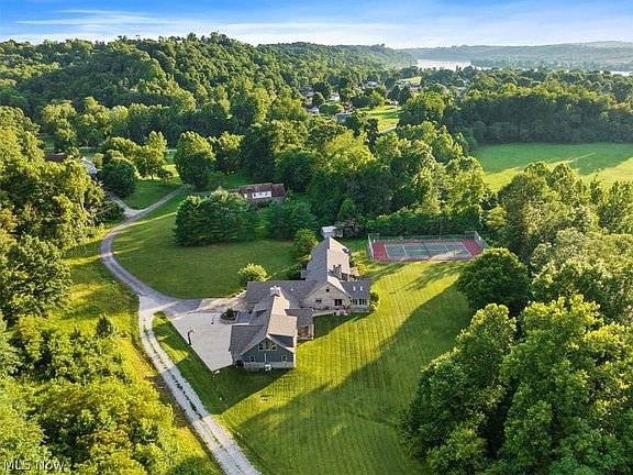 BOM due to the buyer now unable to move to WV. Fascinating modern like farm house amenities in this sprawling and comfortable home. The extra is the gorgeous living space above detached garage with laundry, full bath, kitchen and vaulted ceiling area for bedroom and huge open area with cherry hardwood floors. This room alone is fit for a king...or at least company! Main house has all new hardwoods, skylights, roof, remodeled bathrooms, huge master suite with his/her closets, soaking tub, walk in shower and dual vanities. Kitchen has separate large pantry and opens up to fireside dining area with wood accents. Extra cozy space in the 4 seasons sun room overlooking the 3 acres of privacy, not to mention, the tennis court. The laundry on main level is spectacular with lots of new cabinetry and space. The 14x15 office space on main level is currently being used as bedroom. Upstairs you will find 3 bedrooms, a common space, and another bonus room over attached garage. Jack and Jill bathroom to accommodate kids and company. If you have the need to be outside no matter the weather, the screened in 25x15 breezeway with fireplace and tongue and groove cedar vaulted ceiling is the spot for you. It opens up to front courtyard and plenty of parking or patio to back yard. Gas hook up for grill available there. The detached garage/work shop has radiant heat, 200 Amp with 220V, floor drains, indoor spigots, manibloc plumbing and half bath. Also included is whole house generator.