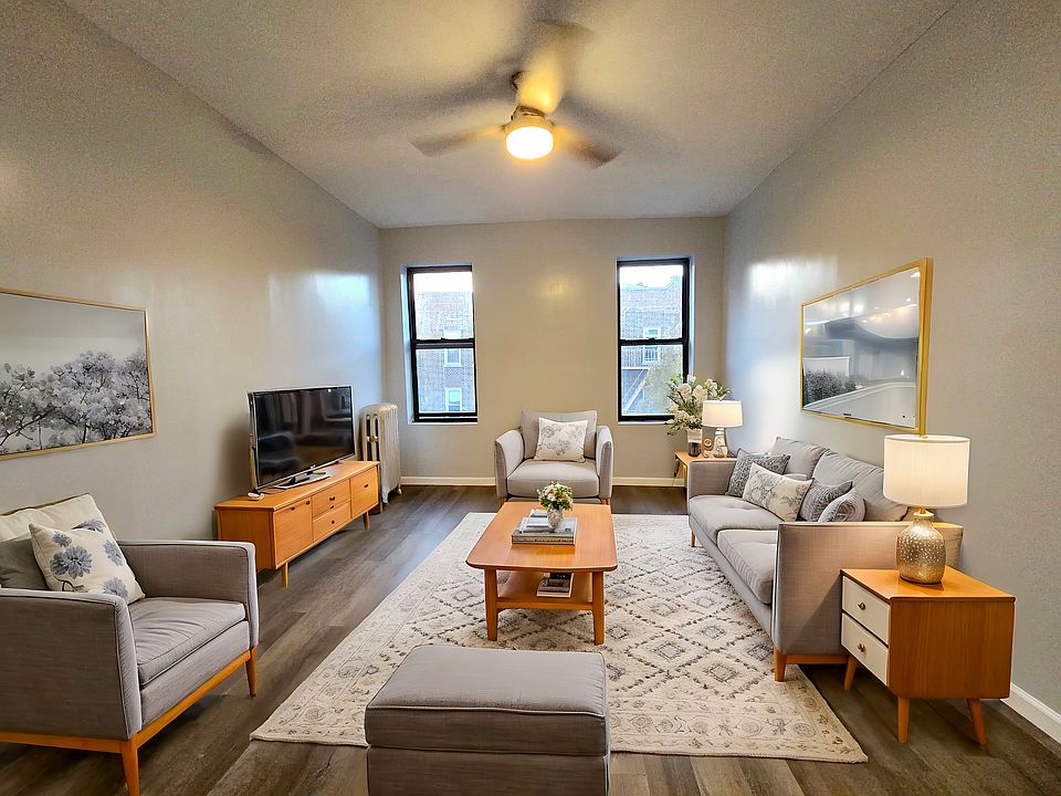 Sun-Kissed, Beautiful Pet-Friendly Apartment with Flexible Layout *TO EXPEDITE THE APPOINTMENT PROCESS, PLEASE INCLUDE A LITTLE ABOUT EVERYONE WHO WILL BE LIVING IN THE UNIT, NUMBER OF OCCUPANTS, EVERYONE'S INCOME AND EVERYONE'S CREDIT SCORE* Welcome to this bright and airy apartment! This corner unit features double exposure, flooding the space with natural light from numerous windows. The spacious layout offers a flexible floor plan, perfect for various living arrangements. Whether you enjoy entertaining or relaxing at home, the very spacious living room provides ample space for both. This is a larger than normal 2 bedroom All bedrooms are generously sized and easily accommodate king-size beds and additional furniture, ensuring comfort and convenience for everyone. The brand-new bathroom offers a touch of luxury, and the fully equipped eat-in kitchen is perfect for preparing home-cooked meals. Additional Features: Pet-friendlybring your furry friends! Laundromat just a few blocks away with pick-up, wash, fold, and drop-off services, plus plenty of machines for your use. Enjoy peaceful community gardens next door, perfect for relaxing outdoors. Commuting is a breeze with the F and G trains at Fort Hamilton Parkway, just a 3-5 minute walk away. This floor-through apartment offers both convenience and comfort in a peaceful neighborhood. Don't waitthis gem won't last long! Call today to schedule your viewing.