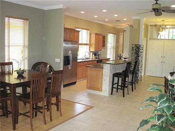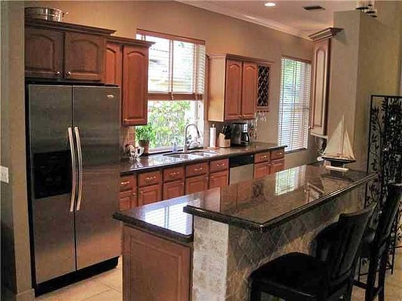 Beautifully updated with a gorgeous open & spacious kitchen with beautiful cabinets,granite counters,breakfast bar & built-in wine racks. All tile & wood style floors throughout. Designer fans,crown molding,custom shelving & lots of recessed ceiling lighting. Spectacular over-sized lush tropical yard to enjoy the beautiful sunsets from the covered screened patio with beautiful pool & heated Jacuzzi.Newer tile roof & replaced a/c 2012. A rated School district this is a 10++