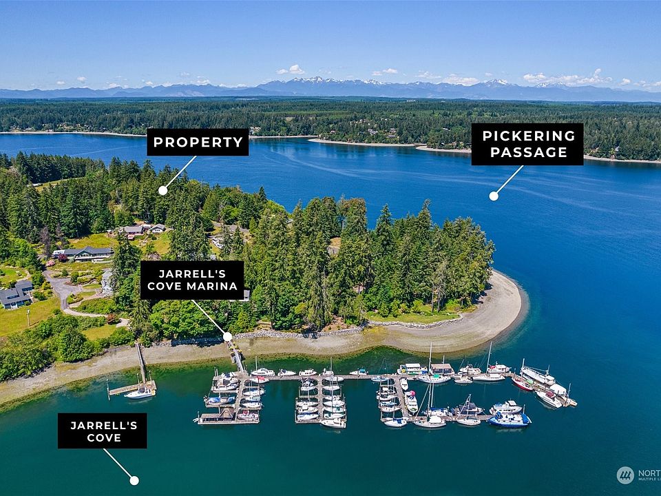 Build your seaside escape in beautiful Jerrell’s Cove! Rare opportunity for 2 adjacent lots/parcels being sold together totaling 2.37 acres & 282' of high bank waterfront. Utilize the full property to create your dream estate or build on 1 lot & sell/lease the other. Sweeping views of Pickering Passage & the majestic Olympics. Take the trail to the beach or stroll to Jarrell’s Cove Marina, 3 lots away, rentable boat slips, park, camping & convenient store. You’ll love island life with Harstine's amazing sandy beaches, incredible wildlife (deer, eagles & orca whales!) Easy access to Allyn & Belfair! A private well, septic, power & outbuilding on 1 lot + separate 3 bed septic on the other. build your dream home or have a prefab home installed