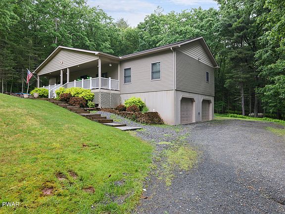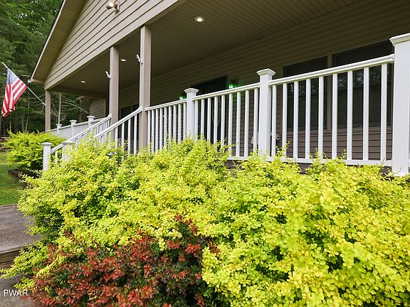 Dream Family Home, meticulously maintained, it's incredible! Room for everyone in this luxuriously built Ranch home. Full length covered front porch. From the moment you step into the large foyer at the entrance, you see the high ceilings throughout the house. Open floor plan living room, with brand new wood burning stove, looks into the chef's kitchen and eating area. Plus a separate formal dining room, big enough to hold thewhole family for holidays and the gorgeous furniture is staying. Four season sun room off the back looking out to the secluded woodlands to enjoy serenity and maybe relax with a good book. The house sits on 1.14 acres and has three large bedrooms and three full bathrooms, one with a jetted tub, and 1 half bathroom. The master suite is gigantic, a real sanctuary, and the closets are oversized too. The fully finished basement has more living areas, two finished bonus rooms, the third full bathroom and family sized cedar closet. Attached two car garage, plus attached shed in back! Efficient forced hot air heat and central AC, for year round comfort. For the grill master, the outside grill is hooked up to the house propane tank. High end ceiling fans, new water heater, new washer and dryer, the inside of the home was freshly painted just a few years ago. Bonus - the driveway goes all the way around the house! One more unbelievable perk - brand new quad with snowplow and trailer, to be sold separately for only 13k. Highly acclaimed Wallenpaupack Area School District. Lake access to 110 acre Tink Wig lake, great for fishing and kayaking. There is also a built in community pool, playground, basketball courts and clubhouse. The community has low dues and they include convenient trash collection. You can't pass up seeing this one of a kind home and it will not stay on the market for long. Home is fully furnished and being sold AS IS.