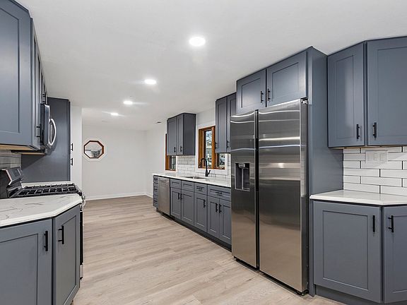This beautiful 3 bedroom ranch has so much to offer! New Roof and Siding! Stunning updated Kitchen that offers New cabinets, SS appliances, quartz countertops, and backsplash. Fully updated bathroom with dual vanity and stunning shower! New high efficiency furnace, water heater, and AC! New vinyl floors throughout entire home. Freshly painted! New doors, trim, ceiling fans. New laundry room! New garage door. Newer wood casing windows. This is move in ready and won't last long.
