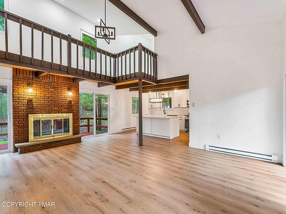 Discover this beautifully updated 3-bedroom, 2-bath home in the gated Saw Creek Estates community of Bushkill. Blending modern design with rustic wooden accents, this home offers a warm and stylish retreat. The open living room features a cozy fireplace, perfect for relaxing evenings. The sleek modern kitchen boasts an eat-in island, ideal for casual dining and entertaining and brand new stainless steel appliances. Spacious bedrooms and updated baths provide comfort throughout. Enjoy all the amenities of Saw Creek Estates, including pools, lakes, tennis courts, fitness center, and 24-hour security. Whether as a full-time residence, vacation home, this move-in-ready gem is a rare find in the Poconos. (Owner is a Real Estate Salesperson)