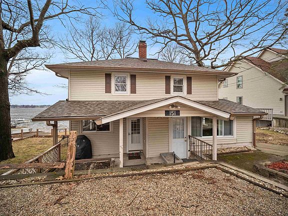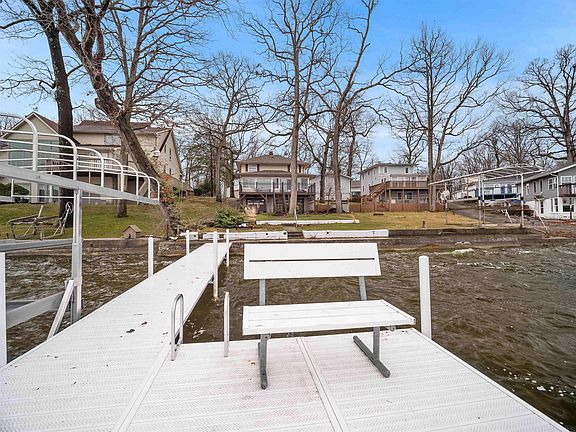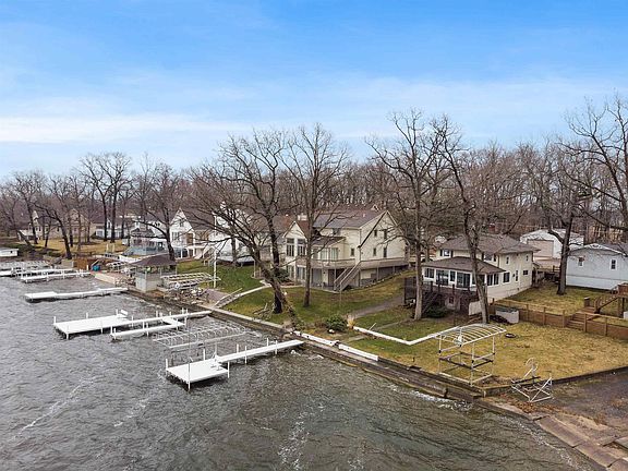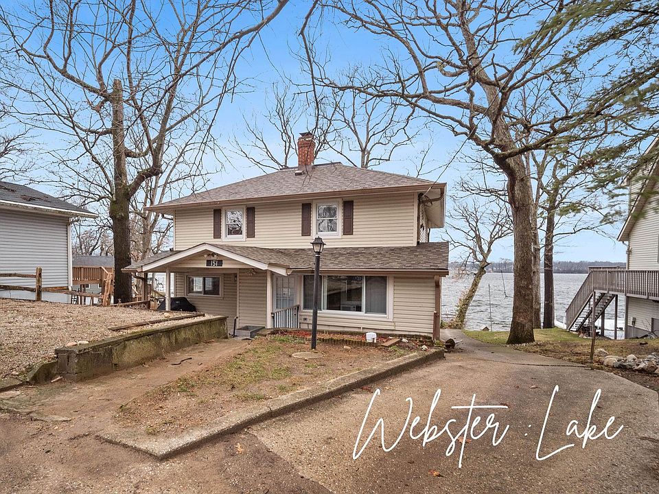Are you ready to start building memories w/ friends & family at the lake? Gorgeous swimming beach w/clear water. This cute, well maintained cottage on Webster Lake has much to offer & lots to love from the large raised deck & 40’ of waterfront to the panoramic living room views & unfinished basement perfect for storing all your lake toys—pier included in sale! (lift/shore station sold separately) Furniture included! Located in quiet & peaceful area w/minimal through traffic, this 4 bedroom, 2 full bath home can be moved into as is, or has tons of potential to be updated according to your own personal style! Built in 1920, roof is only 2 yrs old, HVAC has received yearly maintenance & it has been kept neat & tidy overall. Classic exterior includes covered roadside porch (good for grilling!). Sizable dining area is great for entertaining w/ overflow cabinets that match kitchen & hidden stackable laundry. Efficient kitchen has everything you need w/ abundant cabinetry, window into enclosed porch & tile floor linking dining. Off the kitchen is enclosed porch/flex space w/ cabinets & sink next to private closet w/ commode. Welcoming main living area is a big U shape around central stairs to upper level, carpeted for extra coziness & featuring wrap-around lake views you can enjoy all year round! Plenty of room for couches, casual dining, home office/theater as desired. 2 sets of sliding glass doors on main level open from living to large & fantastic deck sure to be a popular gathering point when the weather cooperates. Just imagine sipping your morning coffee or an ice cold drink at the end of a long day & relaxing w/ the calming sound of water & nature views. Steps lead down to pier which has a built-in bench for a more immersive experience. All 4 bedrooms are up, each comfortably sized w/ ceiling fans & ample storage throughout. 2 full baths are also up, both w/ tub/shower combos, porcelain pedestal sinks & tile walls. Lower level is ideal spot for all your tools & toys as it has 2 garage doors facing lake w/ another regular door allowing you to walk out to water. Outside needs little bit of TLC but it could be turned into 2nd outdoor living space in the shade as it is covered by wood deck above. Webster Lake is excellent for sailing, boating, skiing, fishing & all kinds of recreational activities. Waterfront yard has enough room for outdoor fun & games plus there is a paved driveway that runs length of property down to lake. Reach out today!