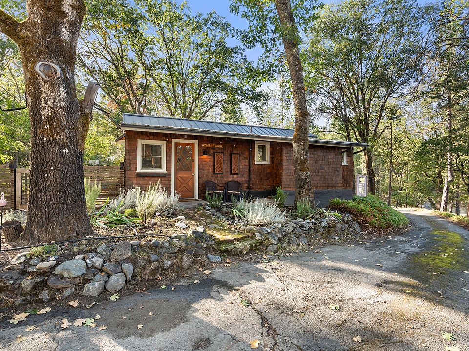 Beautifully maintained and minutes from the Rogue River, this 3-bedroom, 1-bath, 1,123 sq ft home is filled with charm and thoughtful updates. The inviting living area features hickory hardwood floors and a propane fireplace with wood and herringbone tile detail. The kitchen offers a small pantry, a spacious island ideal for gathering, and a bonus room provides the perfect space for an office or library. Recent upgrades include a durable metal roof, newer water heater, well pump, holding tank, interior paint and efficient mini splits. Outdoor living shines with a paved driveway, cedar shingle siding, a relaxing deck, front-yard sprinklers, and numerous fruit trees across 1.75 acres of landscaped, gently sloped terrain. RV parking, A single-car garage with a bonus room and 220 power plus a detached shop or storage building add flexibility—with possible ADU potential. A rare blend of comfort, function, and natural beauty in a peaceful setting.