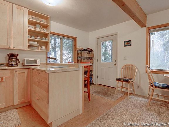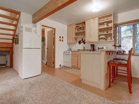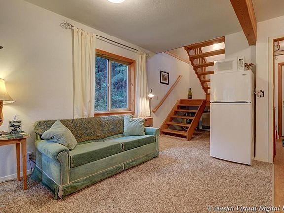 Cozy loft cabin, newly remodeled with open kitchen and living room area downstairs and full bath with washer and dryer. 2 bedrooms upstairs. Nice decks front and back with covered pavilion and fire pit. Walk up entrance from the loop. Set on a knoll next to a lovely river. Walking distance to the ski resort, shopping, and the brewery. Beautiful mountain views. Very private in back.