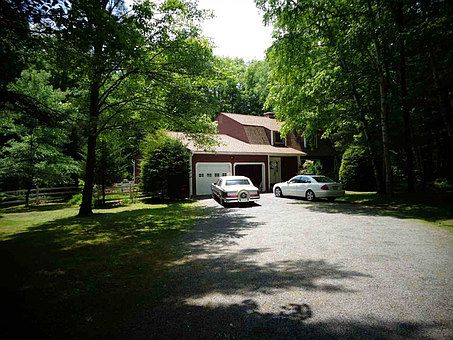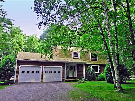 This is a two story contemporary home built by the owner in 1981. The house is 2300 sq.ft. of living space with an attached 2 car garage and spacious deck w/ a hot tub in the back of the house. The first floor has a LR with a stone fire place, kitchen/dining room with a brick fireplace on the backside of the LR. An office/BR and full bath are on the first floor as well. The second floor has 3 Brs and a full bath.