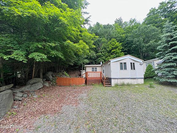 Affordable getaway or full time home with access to Lake Wallenpaupack! Come take a look at this 2 bedroom, 2 bathroom home with plenty of living space. There is an open layout between the kitchen, living room, and family room. The home features a wood burning fireplace and forced hot air heat. Outside you will find a side deck great to relax or barbecue, a side yard with privacy, and a storage shed. You are just a short drive away from the many community amenities including two in-ground pools, boat launch on Lake Wallenpaupack, basketball and tennis courts, and so much more!