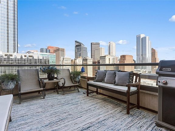 Enjoy daily sunrises from this customized one-of-a- kind corner penthouse immersed in sun filled rooms from 17 windows with iconic 180 degree views of the city, Mon river valley and South Side flats only from Residence 1704. This 2-bedroom, 2-bath residence has built ins for a desk area and living space and full utility room. With 9 ft ceilings, an open layout unfolds, leading to a bright kitchen adorned with premium finishes. The primary suite boasts a spa-like bath and oversized glass enclosed shower . As a First Side resident, enjoy top-tier amenities, including a contemporary fitness center, meeting room, concierge , 24-hour front desk staff, and deeded parking space. Enjoy breathtaking views of Downtown's skyline from every room and rare 10 x 15 balcony. Situated in the heart of Pittsburgh, this residence offers an unparalleled urban lifestyle, just steps from the city's cultural and entertainment venues. Exceptional condition!