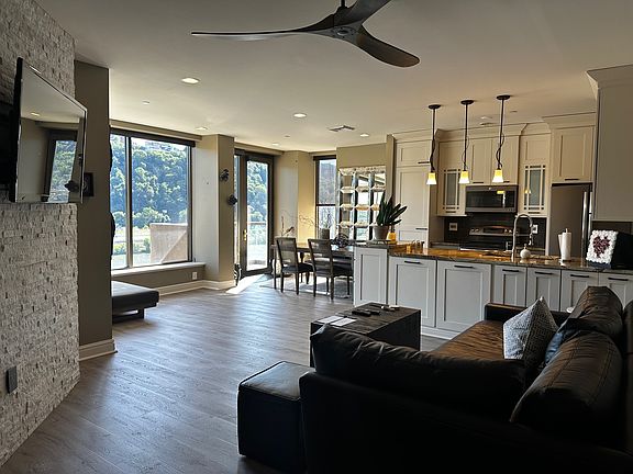 Luxury riverfront FULLY FURNISHED condo with integral parking - ONE GARAGE SPACE included in the private and secure resident garage in the building! Direct unobstructed river views facing Mt Washington through the walls of floor to ceiling glass. Enter through the long hallway with spacious laundry room and guest half bath, leads into the main living space which is open to the kitchen and dining area. Entertainers dream! This unit has a wow factor with the spectacular views as the backdrop adjacent to the designer kitchen. Spa like primary suite is spacious and boasts walk in closet with high quality built ins, dual designer vanity, soaking tub, and walk in shower. One year minimum lease, no pets allowed. Non-smoking only 12 Month Minimum Lease - water, trash, sewer, and garage parking included. Small workout room on site. 24-7 security at lobby