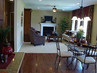LOTS TO LOVE ..... 4 BEDROOMS, 2.5 BATHS, 2 CAR GARAGE AND YARD BACKS TO COMMON GROUND WITH PLAY AREA! Entry Foyer welcomes you home to open floor plan 2-Story. Dining Room is perfect for entertaining. Great Room flows directly to Kitchen/Breakfast Room....truly the heart of this home.Family chef will love center island w/pendant lights, STAINLESS APPLIANCES and beautiful 42" custom cabinets w/crown molding. Charming Powder Rm.Upper Level features Loft/Den. Sweet dreams await in large Master Bedroom Suite with ceiling fan. Luxury Bath with adult-height vanity (dual bowls), soaking tub, separate shower and walk-in closet.Three add'l Bedrooms, 2nd Bath and convenient Laundry Room w/shelving complete the upper level. Basement has unlimited potential for future finish w/egress window for natural light and bath rough-in. Garage insulated/drywalled, alarm system, 6-panel doors and ZONED HEATING/COOLING for energy efficiency. LOCATED IN GREAT NEIGHBORHOOD NEAR SHOPPING, SCHOOLS and EASY HIGHWAY ACCESS!