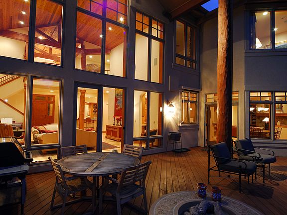Relaxed Colorado Lifestyle Borders Upper Bear Creek! 151 Fox Hollow Ln, 5BD/7BA, 8689 SqFt, 4 car garage, 3.1 acres. Open beamed ceilings, walls of windows, hickory floors, alder cabinetry, granite, 4 fireplaces, great room, office, play/media room, loft, studio/exercise, dual staircases. Huge deck and patio, walk to creek. Private, gated, minutes to Evergreen.