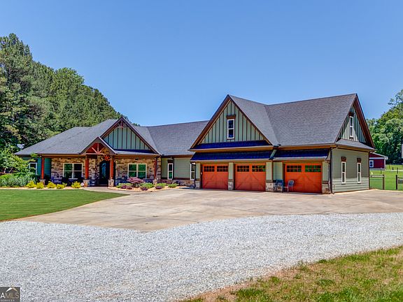 Meander down the long gravel driveway and you will find your dream home situated on the FULL 7.832 acres of pastureland. This property is begging to be home to your hobby farm and horses! The lovely Craftsman style home features gorgeous curb appeal and stunning views. The large front porch is the perfect spot to sip tea and lemonade and enjoy the peaceful countryside. Inside the regal wrought iron double entry you will be blown away by the attention to detail from the wood ceiling foyer to the floor to ceiling stone fireplace in the family room. Just inside the foyer is your home office with a secret storage room behind the bookcase! The family room's vaulted ceilings accentuate the fireplace and provide tons of natural light to the beautifully designed kitchen. Complete with large island, loads of cabinetry, gorgeous shiplapped ceilings and eat-in area, this will certainly be the heart of the home!! There is a large custom pantry for added storage. The oversized primary bedroom is complete with a very large ensuite bathroom, soaking tub, shower and spacious walk-in closet that has access to the laundry room! Three additional bedrooms and two additional bathrooms including a wonderful Jack-n-Jill bathroom, complete the main floor living area. The upstairs offers a bonus room, a bedroom and full bath. This area is perfect for a teen/in-law suite. You will find another hidden passageway via the bookcase to attic storage. If this home's interior is not enough, the outside living area is a true show stopper! The covered back patio is perfect for relaxing while you enjoy the views of your custom in-ground pool surrounded by lush flat pastureland! This is truly living at its finest. The property offers an additional shop with garage bay opening for all of your storage and/or hobby needs. The attached 3-car garage is fully air conditioned; perfect for the car enthusiast. This home offers so much for those seeking solitude and a piece of paradise.