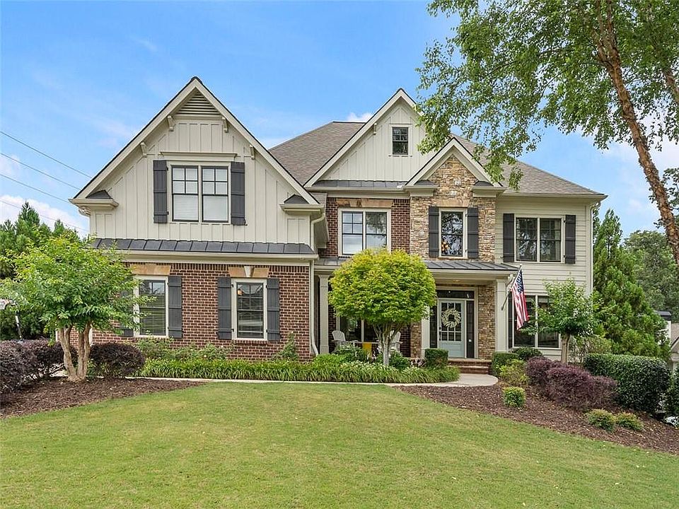 This beautifully finished executive home in West Cobb features a list of amenities that reads like everyone’s dream home wishlist: HUGE level and fenced backyard (perfect for a pool), 3-car garage, finished basement with a bedroom and full bath, guest suite on the main floor, large gourmet kitchen with a commercial grade 8-burner GE range, double staircases, oversized Laundry/Mud Room, screened-in porch, large deck, and a covered patio… the list goes on and on. All set in an enclave of 15 executive homes in the highly-rated Vaughan Elementary, Lost Mountain Middle, and Harrison High School Districts. Upstairs features the Master Suite with a gas fireplace, built-in bookcases, and an enormous two-room walk-in closet. The other 3 bedrooms upstairs are generously-sized as well, one with an en-suite bath and the other with a Jack'n'Jill bath with a double vanity. The fully finished basement is an entertainer's dream with a full bar including a sink, dishwasher, and beverage refrigerator drawers. The large open living space features two sets of double french doors opening to the covered patio for indoor/outdoor entertaining. The basement also includes a large separate theater room, bedroom, and full bath.