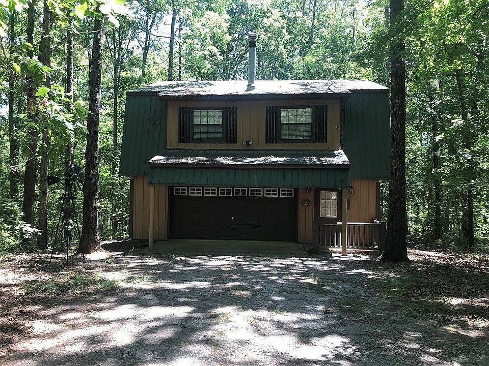 This charming property is the perfect place for someone that wants a private cabin with attached garage to have a place to bring a boat, jeep, or golf cart. The home has a split level design, the lower level area has a bedroom, 2 baths, laundry area, storage, and a 2 car garage. The upstairs leads to the kitchen, living area, bedroom, and a small loft. The home also has upstairs balcony that leads to the lower level back deck. This property is surrounded by National Forest and very close to the famous 18-hole golf course in Hochatown. The property does need some TLC and cleanup, but this is a rare gem and will not last on the market long.