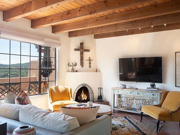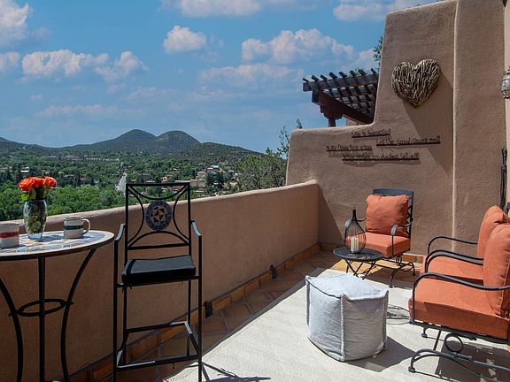 Location, Location, Location! Just renovated Condo in the heart of Santa Fe! Historic Eastside Amazing Views and Location! Pictures do NOT do it justice! Casa Marfy is only 0.8 miles Canyon Road, the epicenter of Santa Fe's finest galleries, restaurants and shopping. Walk to the La Fonda at the Plaza in 24 minutes or so (1.1 miles). Explore four world class museums and a botanical garden on Museum Hill within 1.3 miles. Small beautiful complex on a culdesac with park in the middle. Enjoy the open floor plan and brand new kitchen with everything you need to cook your favorite meals. Designer furnishings original artwork. Smart TV. Central air/heat. Large primary bedroom with En-suite bathroom with large walk in shower. Wonderful views with new windows upstairs. Kiva fireplace, Views and Smart TV. All bathrooms are newly renovated as well with everything you need including shampoo, conditioner, soap and blow dyers. Utilities and Wi-Fi included. You will truly love this space and its surroundings. PLEASE NOTE THE PATIO IS NOW COVERED WITH LIGHTS AND CEILING FANS & AND NEW WINDOWS UPSTAIRS ! 3 to 8 Month 3 Month Minimum Utilities included Small to medium dog allowed No smoking One parking space plus guest parking