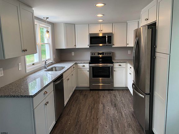 Love where you live! Remodeled 3 bedroom 2 bath ranch on over 2 acres. Kitchen with granite countertops and stainless steel appliances. French door with bottom freezer refrigerator. Large cathedral ceiling living room with modern hanging light. Main bedroom with barn door entry to bathroom. 2 other bedrooms with their primary bathroom. Double doors lead from dining area to the covered rear porch that overlooks the large backyard. Oversized 2+ car detached garage. Additional large shed (as is) She Shed! Partial basement. Seller will provide termite, septic and water certifications.