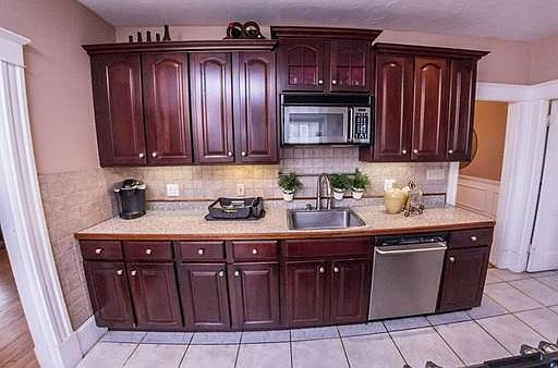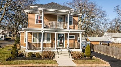 WELCOME HOME where this meticulously maintained yard boasting two driveways, brand new roof, trex deck, vinyl siding, an enclosed play area and patio invites you into the embrace of this traditionally detailed home. Tasteful decor and high quality finishes sets this one apart. First floor features crown molding, wainscoting and gleaming hardwood floors, complimenting the open layout. Dining room flows into a sun drenched living room with plenty of natural lighting. Media room/office space ready for your preference. Extraordinary first level custom tiled bath with double shower heads and a skylight. Upstairs level provides three generous size bedrooms (with walk up attic access) and a recently updated bath. The spacious master bedroom provides access to a private exterior balcony and plenty of closet space. Brand new Navien on demand water, central air , custom blinds, one car garage, convenient location and close proximity to neighborhood schools and the highway makes this an easy one!