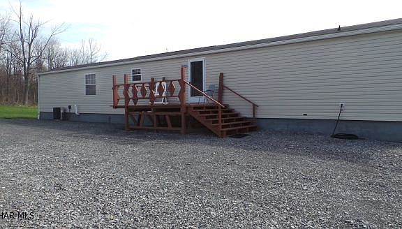 Spaciouss 16 x 80 mobile home on foundation. 30 x 50 garage with 3 doors, finished area and storage above, lot borders Altoona watershed and Blair County line. Exceptionally nice, 2 bedrooms, 2 bath home on 2.1 acres 12 x 50 deck, 2 x 6 exterior walls and other upgrades. Septic is a small flow treatment system.