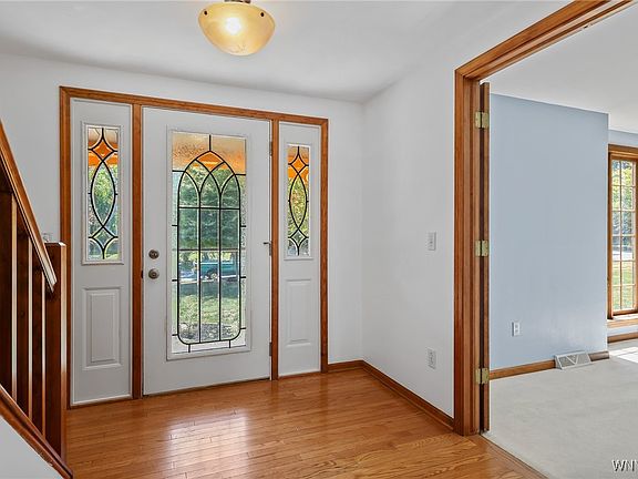 Welcome to 151 Independence Drive in Lockport! This beautiful colonial offers 4 bedrooms, 2 full baths, 2 half baths, and nearly 2,800 sq ft on a spacious double lot with no rear neighbors. The first floor features a 19x13 living room and a 20x15 family room with vaulted ceilings and a fireplace – perfect for cozy Buffalo winters or gathering with friends and family. You’ll also find a formal dining room and a kitchen that blends function and style with granite counters, a double oven, and a gas cooktop. Additional highlights include central A/C for year-round comfort. For added convenience, there’s first-floor laundry with an extra shower, a half bath, and a sunroom with sliding glass doors off the family room for year-round enjoyment.