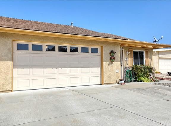 WELCOME HOME TO 55+ EASY LIVING! ** All single-level in desirable Golden West Bonita Homes 55+ community with no HOA fee! ** New Paint throughout interior** Floor plan flows well and makes the most of the 1088 square feet. ** Living room leads to dining area and kitchen ** Den/flex room off the kitchen with built-in shelving** Slider leads to covered patio for outdoor lounging and entertaining** 2 bedrooms and 2 full bathrooms **Master has en suite bathroom ** Slider door in 2nd Bedroom leads to lovely backyard; open, level and easy-care backyard patio with a producing Meyer Lemon tree! **Large attached 2-car garage has washer and dryer, workbench, storage closets + Bonus Room up the garage stairs for more storage, office area or hobby room **Carpet throughout **Very well maintained. **Close to shopping, restaurants and transportation in beautiful Grover Beach. Walk across the street to the city maintained park! ** Schedule your showing today!