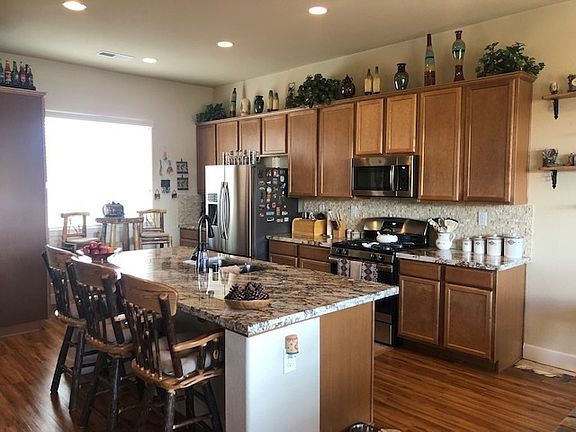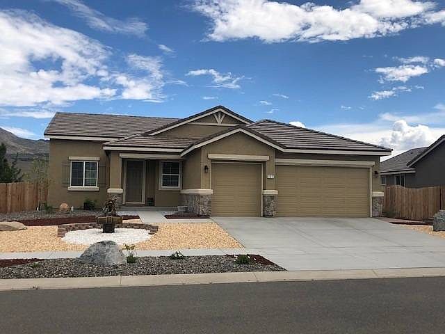 Like new Dayton Valley home is a 2 Bed plus office/den. Very low maintenance exterior is stucco w/tile roof. Fully landscaped w/turf, rock, pavers, covered deck with built in sink and cooler, 2 fountains, and sectioned pet area. Interior is loaded with upgrades including plush carpet and pad, tall baseboards, laminate flooring, fireplace w/custom rock and mantle, central a/c, solid granite kitchen counters, kitchen pull out drawers, stainless appliances, upgraded faucet.