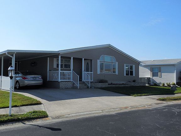If you need a large home located in an exceptional 55+ Manufactured Home Community with resort style amenities then come to see this 3 bedroom home situated on a quiet interior street. The Gardens of Parrish is located in Eastern Manatee Co. and is one of the finest communities for 55+ living. This Palm Harbor home has 1,920 sq. ft. The large open living room has a stone front, wood burning fireplace with built-in shelves and a place for your TV. The dining room has a lighted built-in buffet and will come furnished with a dining table and chairs. The kitchen has plenty of cabinets and counter space including a large pantry closet and a built-in office desk. The kitchen also has an island with an attached breakfast table. The large Master bedroom will come furnished and has a true walk in closet and a bright and lovely master Bathroom. The 1st guest bedroom is also large and will come with 2 twin beds. The 2nd Guest Bedroom is also a good size and has ample closet space. The laundry room leads to the rear facing, screened lanai with an additional patio for your BBQ. This home has plenty of storage options including a storage shed located at the top of the carport. The driveway and carport can accommodate several vehicles. There is a large brick planter in the front of the home where you can expresses your creative love for year round gardening. This large and open home would be perfect for a mother/daughter arrangement or for a family who enjoys having lots of company.