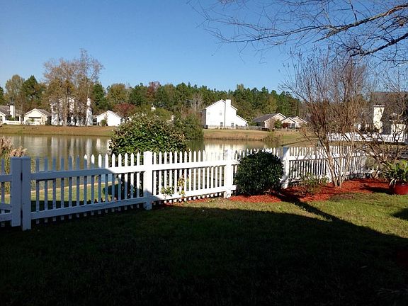 Comfortable single story, split floor plan home with lake view. Spacious vaulted living room with wood burning fireplace. This homes kitchen has loads of cabinet and counter space. The dining room includes wainscoting and is big enough for a large table and its accessories. The sunroom overlooks the lake and the fenced back yard. The master bedroom sits in the back of the home and it too looks over the lake. This room includes a his and hers closet, one of which is a walk in. The master bath features a double sink, walk in shower, garden tub and linen closet. The other two bedrooms are at the front of the home, allowing for extra privacy. New wood laminate flooring and carpet was just installed. The two car garage is connected via a covered breezeway. A lawn irrigation system, refrigerator