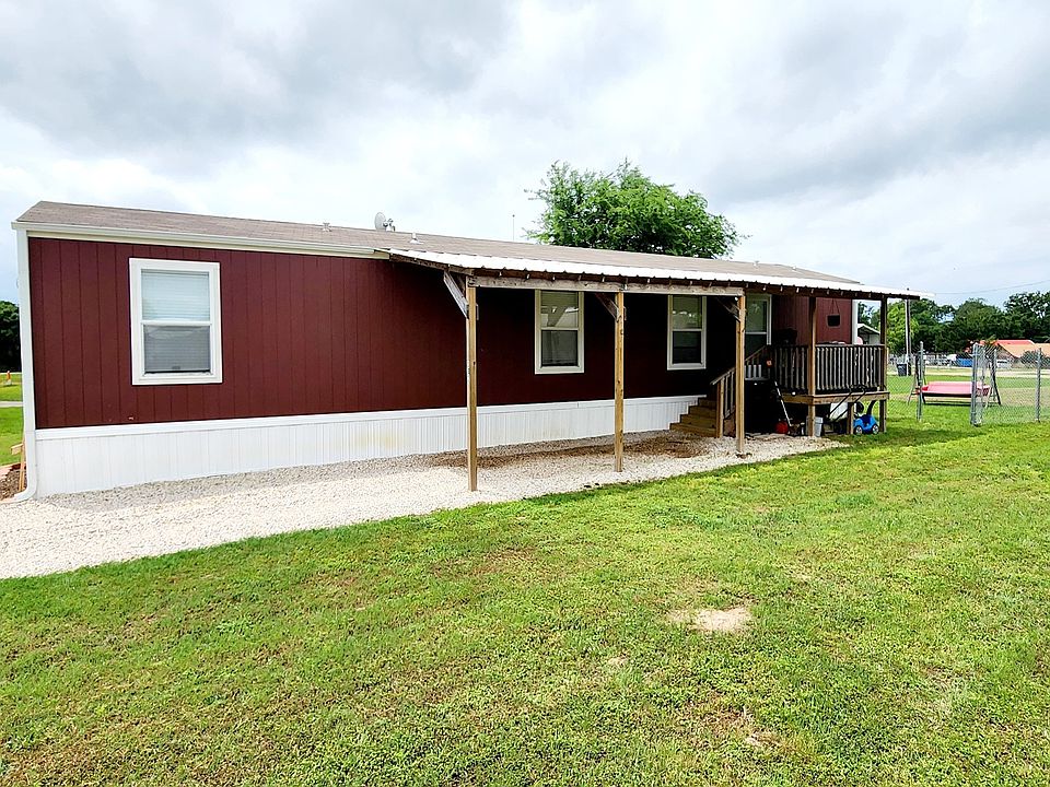PRICE IMPROVEMENT!! This beautifully designed turnkey manufactured home, built in 2022, offers a comfortable living space with two bedrooms and two full bathrooms, all within an efficient 868 square foot open floor plan. Nestled in the secure, gated waterfront community of Holiday Villages of Lake Fork, this property features a custom-covered porch at both the front and back, an attached carport for convenient parking, and a newly installed gravel driveway that enhances its curb appeal. The fenced backyard serves as a tranquil retreat, complete with a designated area for gardening, making it an ideal spot for relaxation and outdoor activities. Residents of this vibrant community have access to a wealth of amenities, including, private fishing piers for angling enthusiasts, boat ramps that provide seamless access to the expansive Lake Fork, a welcoming clubhouse, a refreshing saltwater pool, playgrounds for children, a basketball court for sports lovers, and numerous picnic areas perfect for gatherings and enjoying the outdoors. This property is sure to suit your needs, whether you're just starting out or looking to retire! Don't wait and schedule your showing today!