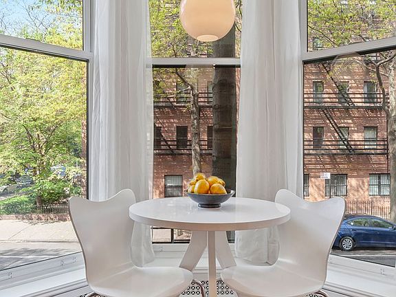 SPACE + LIGHT + LOCATION RARELY AVAILABLE CORNER BROWNSTONE floor-through on parlor level! Spacious (aprx 1100sqft) light drenched 3-BR home with soaring 12FT CEILINGS. Floor-to-ceiling windows offer southern, northern and western exposures. Great layout with open kitchen/dining/living makes entertaining and everyday life a breeze. Eat-in kitchen features Caesarstone countertops, Bertazzoni gas range, AND A COVETED BAY WINDOW- peer down the picturesque tree lined blocks as you sip your morning coffee! Ample storage including a 13x9ft storage loft. This is the authentic charm you have been waiting for in PRIME FORT GREENE! Gorgeous shared garden, common basement for laundry and additional storage (space for bikes!). Recent exterior renovation included new windows. Pets upon approval. 5 Unit self-managed co-op building. Easy walk to nearly all subway lines, steps to Ft Greene Park, BAM, Barclays, and all the wonderful dining and shopping that Ft Greene offers! *BUYERS BROKERS WELCOME*
