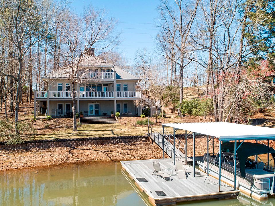 Over 4200 sq. ft under roof per appraisal in this lovely home built wi/ the Reward Wall System w/ insulated concrete forms & reinforced steel rods and exterior of Perma Crete & a 50 yr standing seam metal roof. This immaculate energy efficient home boasts 4 bedrooms & 5 bathrooms w/ double garage & work shop, office/pantry, large laundry, covered porch & upper balcony on 3rd level and lower recreation/bunk rooms... great for the kids play room or recreation room for the grown-ups! True Maple hardwood floors . Master on the main lakeside & two large bedroom suites on the upper level overlooking Lake Martin. One of the few homes that offers natural gas. This low maintenance home has a covered boat slip & a great view of Blue Creek w/ a concrete seawalll made of Keystone interlocking blocks.