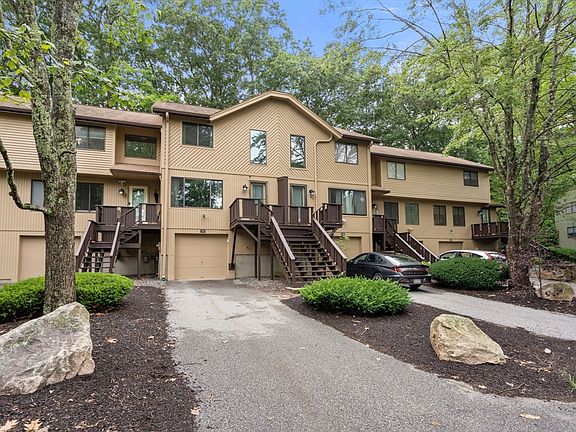 Brand new roof and skylight!! Welcome to this lovely 2 bedroom condo located in the sought after Ledgemere Condominium neighborhood. Enter into the airy, two story foyer which leads into an open concept living and dining area complete with hardwood floors as well as a convenient powder room. The kitchen, with gas stove has ample cabinets for storage. An oversized slider leads out to a private deck overlooking the wooded area which is great for relaxing with your morning coffee. An open staircase leads up to the second floor which offers 2 good sized bedrooms, a full bath as well as an additional 1/2 bath plus skylight. The basement has a small finished area that is great for storage or small work space and you will also find a one car garage with direct entry into the home. Gas furnace and water heater were replaced in 2019. Very private and peaceful area but located within close proximity to restaurants, supermarkets, shopping and the Ashland commuter rail .