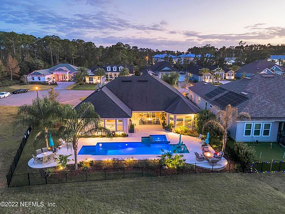 Nocatee living at its finest! Find serenity in this delightful Dostie home that has everything & more! Lounge or entertain by your heated salt-water pool & hot tub or open the stacking sliding doors and close the screen to take in the sunset while cooking on your patio's summer kitchen without the bother of bugs. A few of the many extras you will find in this wired for surround sound home are a built in custom wall unit, two HVACs, central vacuum system, quartz countertops, and soft-close cabinets and drawers in the kitchen and main bathroom.