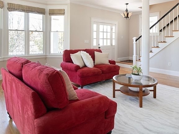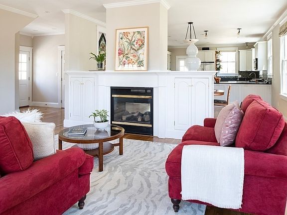 Nestled in the heart of Arlington Heights, this gracious 2007-built Greek Revival in the Mt Gilboa neighborhood balances traditional elegance with a modern floor plan and amenities. You are greeted by a wrap-around porch that leads to a formal living room featuring bay windows that flood the interior with natural light, accentuating the beautiful built-ins and hardwood floors. A double-sided gas fireplace separates the living and formal dining room. The sleek, gourmet kitchen has a breakfast bar and some updated (2023-24) appliances. There are two possible primary bedroom suites. The 3rd floor is a true retreat, featuring a spa-like en-suite bath, ample closet space, and solar skylights. The lower level is a perfect media room with a half bath, wet bar, and office space. Ideally situated on an 8198 square foot lot. A terrace is perfect for enjoying cocktails. The detached garage has a loft for potentially more living area. Minuteman Bike path, Trader Joe's, and MBTA bus steps away