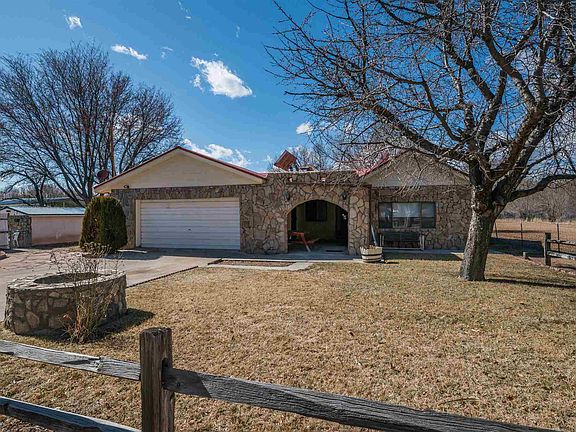 Nice adobe farmhouse with nearly 5 acres of organic irrigated land. Great location is a very green area, with healthy large cottonwood trees throughout. Land is ideal for a small farm with ample irrigation water rights. Grow corn, chile, potatoes, squash and many more vegetables! Also ideal location for horses, alpacas, cattle, dogs, cats, chickens, etc. Home is beautiful, peaceful and immaculate. Perfect size for a small family with 3 bedrooms and 2 bath. Ample parking spaces for RV parking , vehicles or horse trailers. Great location to place play area for children. Home is about 30 minutes from Santa Fe and 25 minutes to Los Alamos.