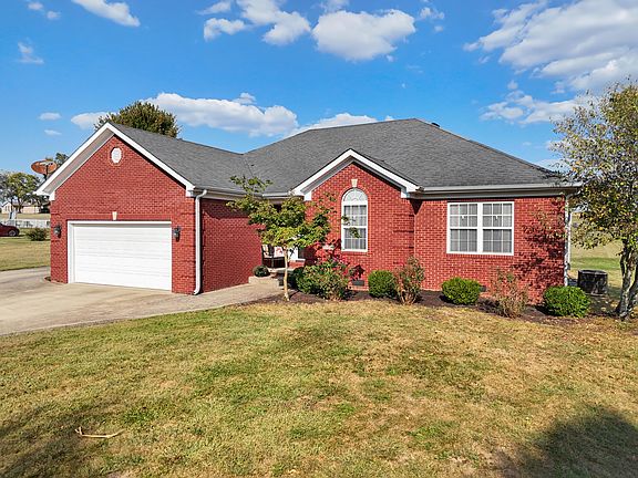 Spacious All-Brick Home on Over an Acre! This beautiful 3-bedroom, 2-bath, 1,940 sq. ft. home blends neighborhood convenience with a peaceful, country feel. Sitting on a generous 1.04-acre lot, you'll have room to breathe, play, and entertain, while still being close to HWY 127 and just 10 minutes from the Bluegrass Parkway. Inside, enjoy vaulted ceilings that fill the living room with natural light, a roomy eat-in kitchen with abundant cabinetry, generous countertop space, and new stainless steel appliances. The master suite boasts trey ceilings and a private bath, while fresh, neutral paint colors throughout provide a peaceful, move-in ready aesthetic. A 2-car garage and large concrete driveway allow for plenty of parking for larger families and/or guests. The above ground pool is the icing on the cake, serving as a great place to cool off and play in the summer months. When the seasons change, head on over to Devine's Pumpkin Patch and Winter Fest, just a 2 minute drive away, for some family fun! No matter your season of life, this one level brick home could be the one for you!