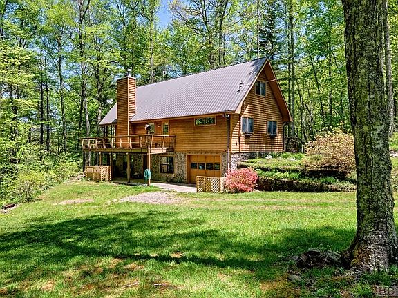 This private beautifully maintained 4.12 acre mountain retreat is calling your name! At 3900'+ elevation, this property boasts a stocked trout pond, raised garden, reliable spring, tankless gas hot water system, and generator. Immaculately kept property has an open floor plan, cathedral ceilings, stone fireplace, 2BR/3BA and bonus with full bath for extra sleeping, office, or game room. Basement has workshop area, a full bath, and is ready for you to finish. Socialize on the wraparound deck or take in the view and mountain air. Private and ready for you and your animals. 5 minutes to Lake Glenville 20 minutes to Cashiers and Franklin. This property is a must see!!!